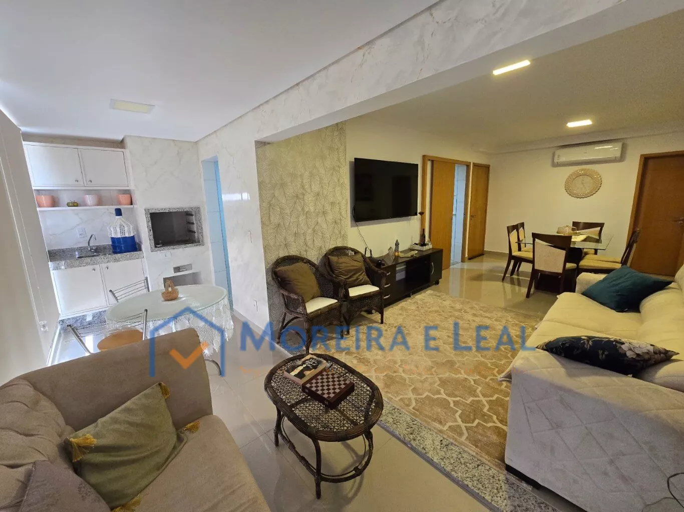 Área útil de 134m2 contendo 1 suíte com banheira, 1 suíte e 1 demi suite (2 quartos). Sacada com churrasqueira interligada à sala.